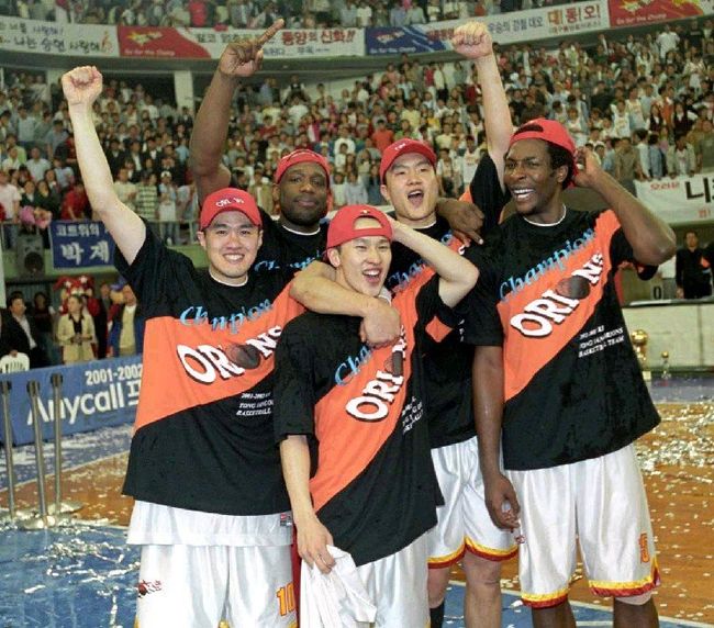 오리온은 2002년 챔프전에서 서울 SK와 7차전 접전 끝에 4승 3패로 첫 우승을 차지했다. 5차전까지 2승 3패로 뒤졌던 오리온은 6,7차전을 내리 잡아내 우승하는 저력을 선보였다. 실업농구 동양시절부터 창단멤버였던 김병철과 전희철이 팀의 중심이었다. 2001년 3순위로 데뷔한 신인 김승현은 신인왕과 MVP를 독식하며 기염을 토했다. 여기에 최고외인 마르커스 힉스와 ‘리바운드왕’ 라이언 페리맨이 가세해 화룡점정을 이뤘다.