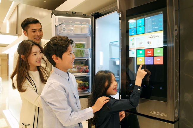 특히 삼성전자는 패밀리 허브에 사물인터넷(IoT) 기능을 본격적으로 적용, 냉장실 도어에 탑재한 21.5인치 풀HD 터치스크린과 내장된 마이크ㆍ스피커를 통해 냉장고의 현재 상태를 확인하고 다양한 기능을 쉽게