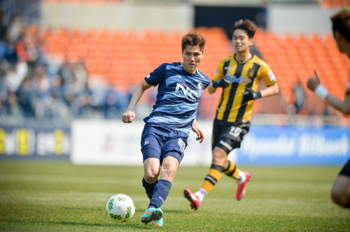 그런데 전반전 18분 논란의 장면이 나왔다. 충주의 미드필더 김정훈(25)이 전진패스를 받으러 문전으로 쇄도하는 순간 김동진이 몸싸움을 시도했다. 김동진이 아니라면 김정훈과 골키퍼 김영광이 1대1로 맞서는 상황. 김동진은 어깨싸움을 했다.
