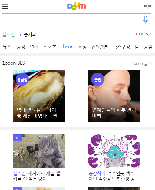 지난해 12월 오픈한 ‘1boon’은 누구나 공감할 수 있는 생활 밀착형 콘텐츠부터 사회 이슈, 정치, 예술, 문화 등 다양한 주제의 콘텐츠를 제공하는 서비스로, 일평균 1000만 조회수를 기록하는 등 인기를 더해가고 있다. 카드뷰 등 모바일에 최적화된 콘텐츠 제공 방식을 적용하고 이용자별 맞춤형 추천을 접목한 점이 호응을 이끌어낸 것으로 풀이된다.