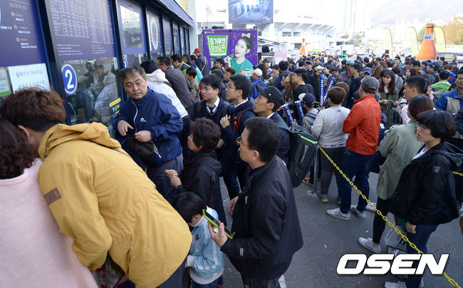 1일 마산구장에서 열린 ‘2016 타이어뱅크 KBO리그’ NC 다이노스와 KIA 타이거즈의 개막전에 1만 1000명의 관중이 야구장을 찾았다. 마산 야구장 매표소는 일찍이 많은 관중들로 붐볐고 결국 매진이 됐다.