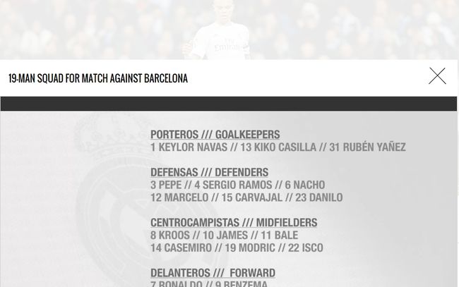 '엘 클라식코'에 나설 레알 마드리드 선수 명단이 발표됐다.