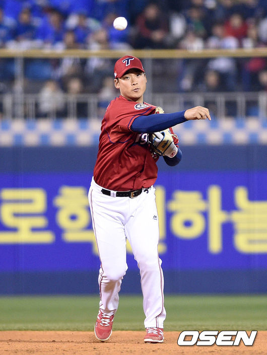 전날 김주형은 3회 1사 후 NC 김성욱의 3루수-유격수 깊숙한 타구를 잘 따라가 잡았다. 1루까지 던진 공은 노바운드 없이 1루수 미트에 도달했다. 타구 방향이 좋아 어쩔 수 없는 내야 안타였다.