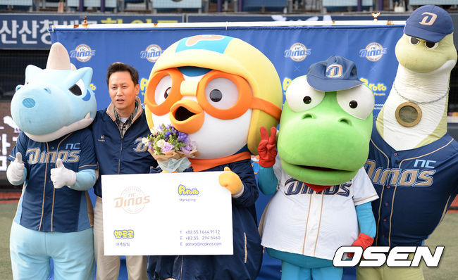 NC는 2일 마산구장에서 열린 KIA전에 앞서 뽀로로를 마케팅팀 직원으로 입사시켜, 명함 전달식과 포토 타임을 가졌다.