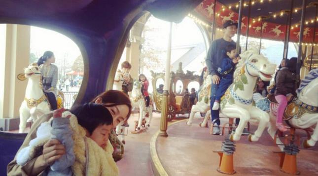 사진 속 이휘재와 문정원 씨는 각자 서언이와 서준이를 안고 마차와 회전목마에 올라 즐거운 시간을 보내고 있다.