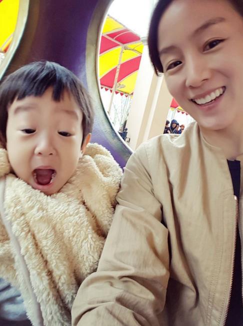 사진 속 문정원 씨는 청순한 미모를 뽐내고 있고 서준이는 그 옆에서 입을 크게 벌린 채 장난스러운 표정을 지어보였다.