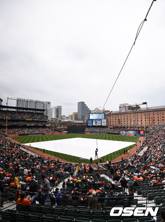 개막전을 위해 준비된 식전 행사를 다 소화한 뒤에 우천 지연이 결정됐다. 볼티모어 구단은 신속하게 내야 전체를 덮는 방수포를 깔아 그라운드 상태가 더 나빠지지 않게 조치했다. 비가 그치면 경기가 시작될 것으로 보인다.
