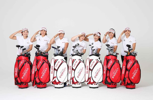 [사진] 왼쪽부터 권지람, 김해림, 하민송, 김지현, 김수현, 이소영, 장수연 /롯데그룹 제공