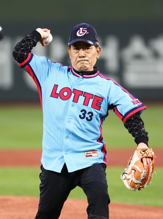 1984년 롯데 자이언츠의 창단 첫 우승의 주역인 유두열 전 코치가 가슴 뭉클한 시구를 연출하면서 후배들을 응원했다.