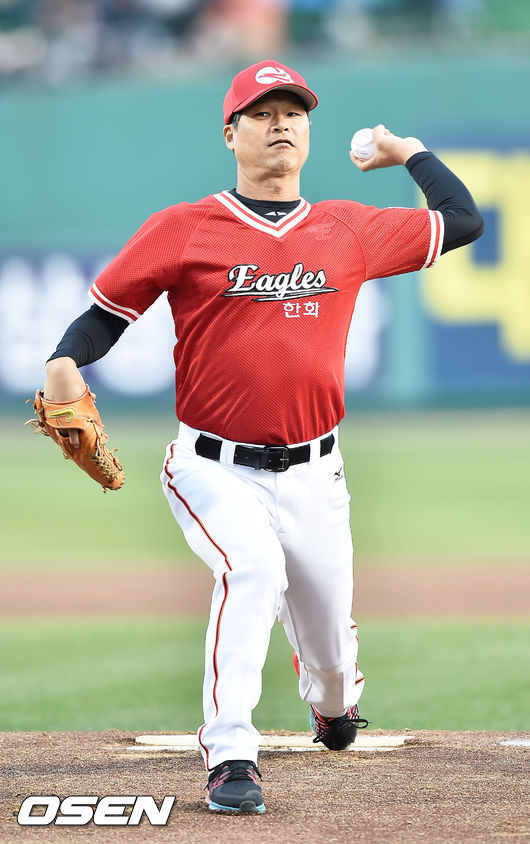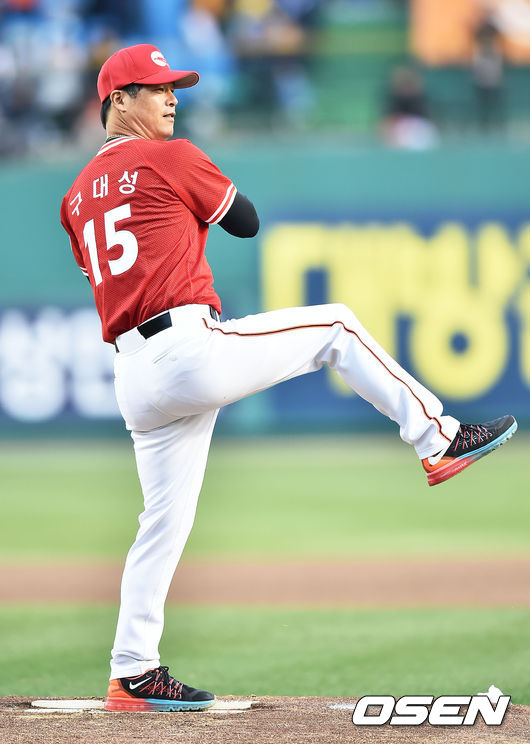 지난 5일 한화의 홈 개막전 깜짝 시구자로 6년 만에 고향 대전을 찾은 '대성불패' 구대성(47). 지난 1999년 한화의 한국시리즈 우승을 이끈 MVP로 한화팬들이 가장 보고 싶어 한 레전드였다. 팬들 못지않게 한화에 오래 몸담은 선수 및 관계자들도 늘 구대성을 그리워했고, 이날 6년 만에 의미있는 시구 행사를 마련했다.