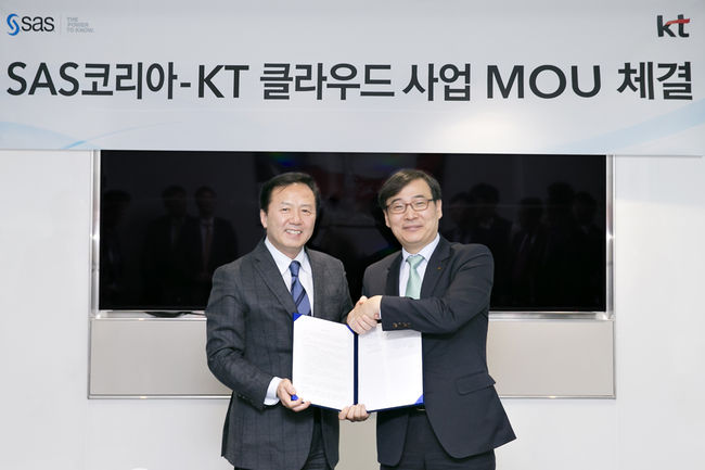 KT는 글로벌 데이터 분석 선두 기업 SAS(쌔스)코리아와 클라우드 사업 업무제휴(MOU)를 체결했다고 8일 밝혔다.
