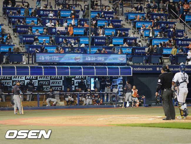 NC는 이날 경기 후반 전광판을 통해 '오물 투척은 선수들의 안전을 위협하고, 경기 진행을 방해하는 잘못된 행위입니다. 성숙한 관람 문화를 보여주세요'라는 문구를 계속해서 내보내며 주의를 당부했다. 배 단장은 "사고를 일으킨 관중들은 (출입금지를) 고민하고 있지만 신상 문제 때문에 지켜봐야 할 것 같다. 더는 사고가 일어나지 않도록 필요한 조치를 취하겠다"고 재발 방지를 약속했다. /waw@osen.co.kr