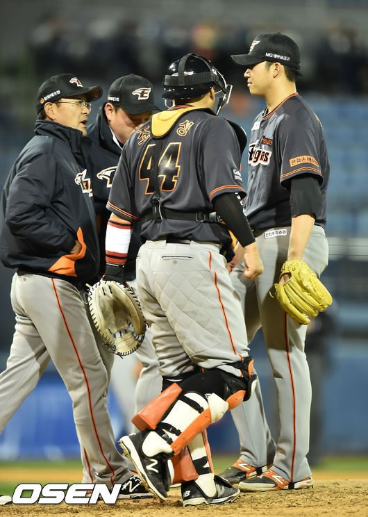 그러나 2회가 시작되자 송창현은 포수를 세워 놓고 하프 피칭으로 30개가량 공을 던졌다. 언더핸드 정대훈도 그의 옆에서 몸을 풀기 시작했다. 김민우가 2회를 실점 없이 막았지만 3회에는 송창현과 더불어 장민재가 등장했다. 하프 피칭으로 20개 정도 공을 뿌리면서 몸을 풀었지만, 시선은 그라운드 안으로 향해 있었다.