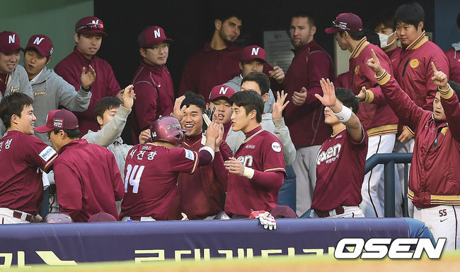 올 시즌 전체 3번째이자 팀 시즌 첫 번째 선발 전원 안타. 넥센은 11안타를 친 8회 무사 1루 현재 8-7로 앞서 있다. /autumnbb@osen.co.kr