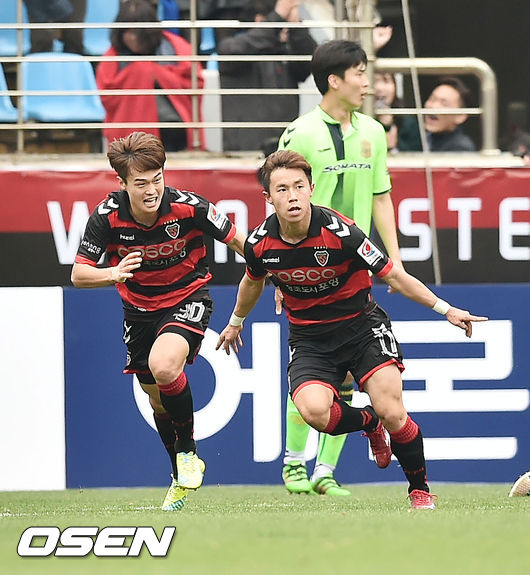 포항은 10일 오후 포항스틸야드서 열린 전북과의 현대오일뱅크 K리그 클래식 2016 4라운드 홈경기서 후반 13분 이동국에게 선제골을 내줬지만 종료 직전 심동운의 동점골을 앞세워 1-1로 비겼다.