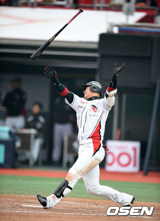 이 타구는 위즈파크 외야 가운데에 위치한 하이트펍 옥상을 맞고 넘어갔다. KBO 공식 기록업체인 ‘스포츠투아이’에 따르면 이는 비거리 145m로 기록됐다. 위즈파크 개장 이후 최장 비거리다. 종전에는 박병호(미네소타 트윈스)와 이호준(NC 다이노스)이 기록했던 135m가 최장 비거리 홈런이었다. /krsumin@osen.co.kr