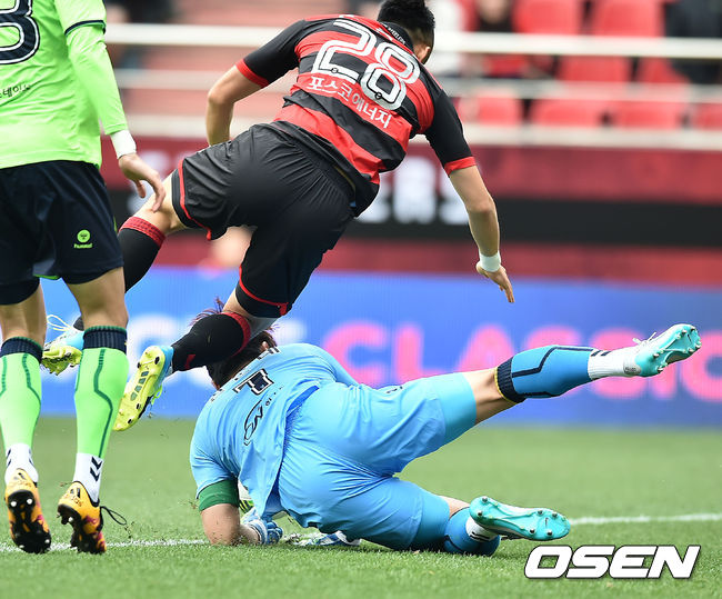 포항은 승점 3 같은 1을 얻었음에도 마음껏 웃지 못했다. 전반 초반 전북 진영서 착지를 잘못해 부상을 입은 손준호가 들것에 실려나간 뒤 전반 7분 만에 교체 아웃됐기 때문이다.