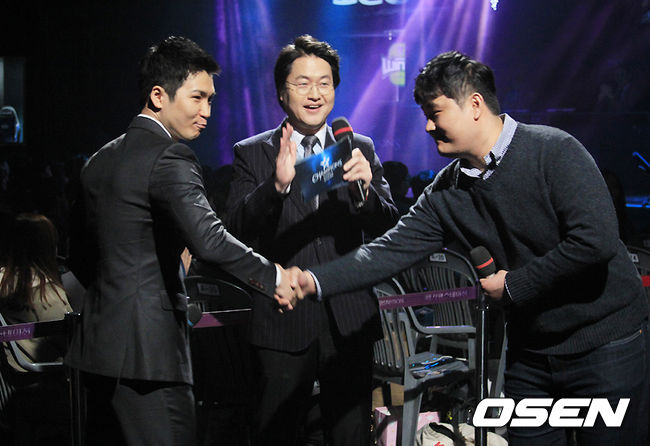 ROX 타이거즈에 이어 두 번째로 10승 고지를 밟았지만 4연패를 당하면서 4위로 마감한 진에어와 2라운드를 7승 2패로로 마무리 하며 포스트시즌에 합류한 상승세의 아프리카의 경기에 롤챔스 팬들의 관심이 집중되고 있다. 두 팀의 감독이 출사표를 말한 후 악수로 선의의 경쟁을 약속하고 있다. / scrapper@osen.co.kr