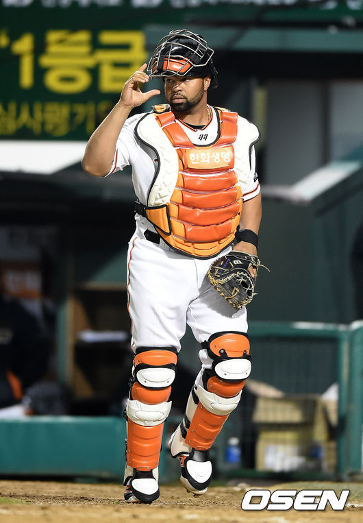 한화 외국인 타자 윌린 로사리오(27)가 KBO리그 데뷔 후 처음으로 포수 마스크를 썼다.