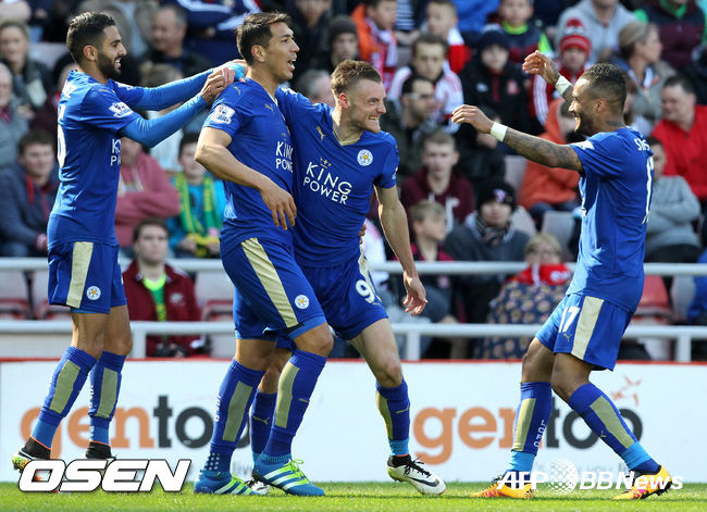 레스터 시티의 돌풍은 시즌 막판에도 계속되고 있다. 현재 프리미어리그가 33라운드까지 진행된 가운데 레스터 시티는 21승 9무 3패(승점 72)를 기록해 2위 토트넘(18승 11무 4패)을 승점 7점 차로 앞서고 있다. 남은 경기가 5경기밖에 안 된다는 점을 고려하면, 레스터 시티의 우승 가능성은 매우 높다.