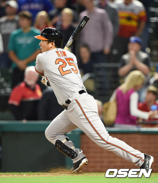 김현수는 15일(한국시간) 미국 텍사스주 알링턴의 글로브 라이프 파크에서 열린 2016 메이저리그 텍사스 레인저스와의 경기에서 팀이 3-6으로 뒤지던 9회초 2사에 놀란 라이몰드의 대타로 나와 우전안타를 날렸다.