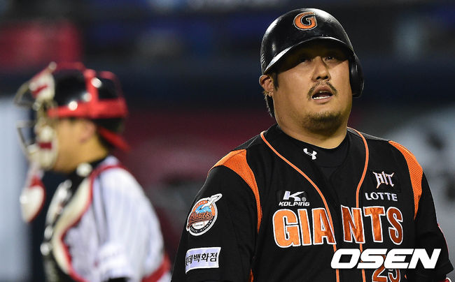 후속 정훈 역시 김진성의 포크볼을 골라내지 못했다. 정훈은 초구 2구 김진성의 포크볼에 헛스윙 하며 2스트라이크에 몰렸다. 그리고 이번엔 포크볼을 생각하려는 순간 3구 140km 속구에 다시 타이밍을 잡지 못하며 헛스윙 했다. 3구 삼진. 공수 교대.