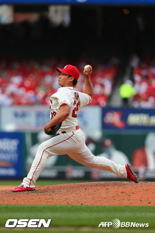 오승환은 17일(이하 한국시간) 미 미주리주 세인트루이스의 부시 스타디움에서 열린 신시내티 레즈와의 경기에서 5-8로 뒤진 7회 팀의 네 번째 투수로 등판해 2이닝 동안 1피안타 1볼넷 2탈삼진 무실점을 기록했다. MLB 데뷔 이후 2이닝을 소화한 것은 이번이 처음이다. 한편 지난 경기까지 4⅔이닝에서 노히터 행진을 이어왔던 오승환은 첫 피안타를 기록했다. 다만 팀은 8-9, 1점차 패배를 당했다.
