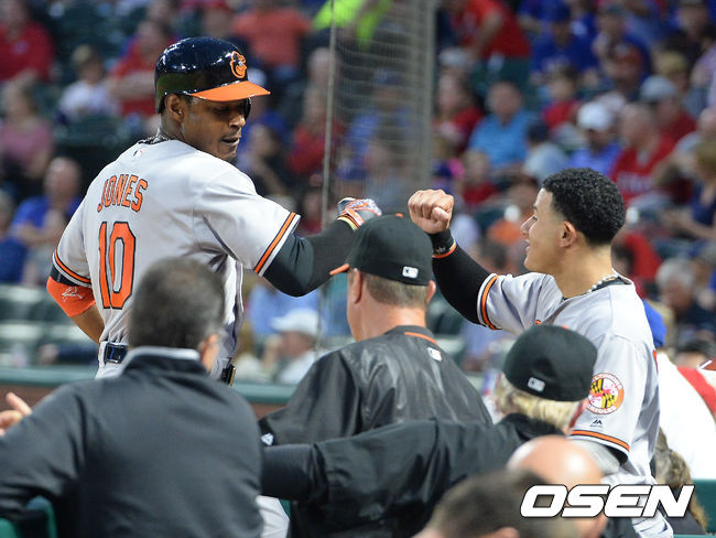 첫 이닝부터 홈런이 터져 나왔다. 1회초 1사에 매니 마차도는 텍사스 선발 콜비 루이스를 상대로 좌중간 펜스를 넘기는 선제 솔로홈런을 쳤다. 1-1이 된 후 3회초에는 애덤 존스가 비슷한 코스로 타구를 보내 다시 리드를 잡는 솔로홈런을 날렸다. 늑골 통증으로 고생하다 전날 선발 라인업에 복귀한 존스의 시즌 첫 대포였다.