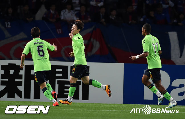 계속해서 기회를 엿보던 전북은 전반 35분 선제골을 넣었다. 로페즈가 레오나르도와 공을 주고 받아 수비진을 흔들었고, 문전으로 침투한 김보경에게 연결했다. 김보경은 주저하지 않고 터닝슛을 시도해 도쿄의 골문을 흔들었다.