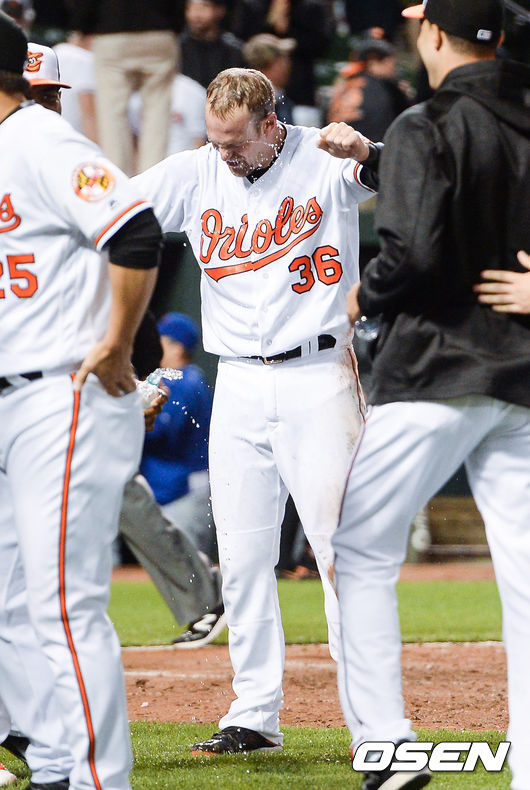 연장 10회말 2사 만루 폭투로 끝내기 득점을 올린 볼티모어 조셉이 동료들의 축하를 받고 있다. / soul1014@osen.co.kr