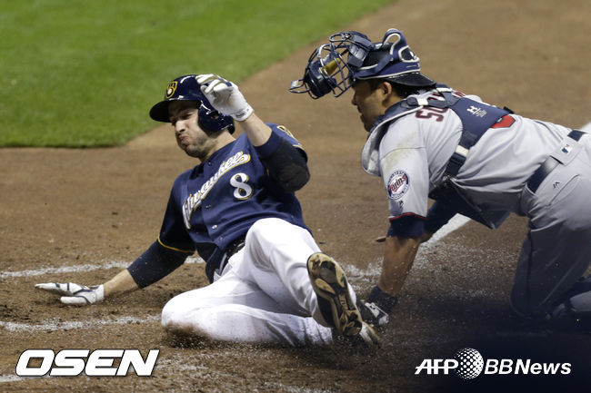 미네소타는 2회 2사 후 커트 스즈키의 좌중간 2루타와 톰 밀론의 내야안타로 2사 1,3루 기회를 잡은 뒤 에두아르도 누네스의 우전 적시타로 선취점을 올렸다. 그러나 밀워키가 4회 라이언 브론의 우전안타로 만든 2사 1루에서 크리스 카터의 좌중간 적시 2루타가 나오면서 1-1 동점을 만들었다(사진).