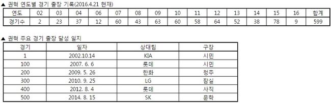 투수 600경기 출장은 이전까지 총 16명의 선수가 달성했으며 그 중 한화 소속 선수로는 차명주(2006년), 송진우(2007년) 두 명이 달성한 바 있다. KBO는 권혁이 600경기 출장을 달성할 경우 표창규정에 의거 기념상을 수여할 예정이다. /waw@osen.co.kr