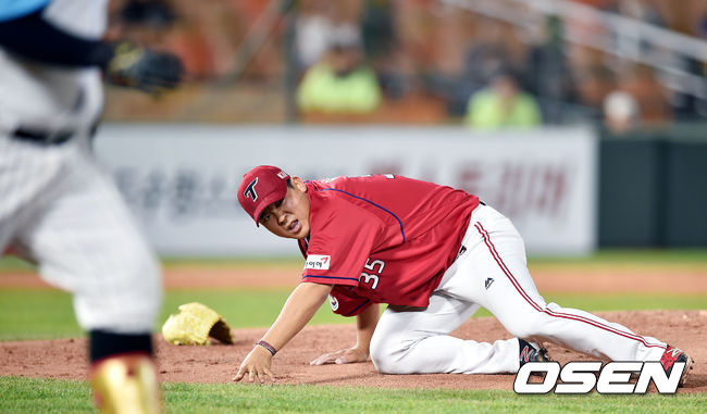 위기는 계속됐다. 황재균을 유격수 뜬공으로 처리했지만 박종윤에 안타를 허용한 뒤 1루 견제 실책까지 범해 2사 2,3루에 몰렸고 정훈에 2타점 적시타까지 허용했다. 이후 문규현은 중견수 뜬공으로 돌려세우며 겨우 1회를 마감했다.