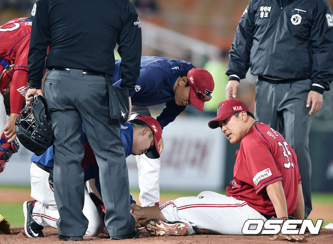 KIA 관계자는 "임준혁이 왼쪽 정강이와 장딴지 사이를 빗겨 맞은 것 같다"면서 "인근 병원으로 이동해 X-ray 등 정밀 검진을 받을 예정이다"고 밝혔다. /jhrae@osen.co.kr
