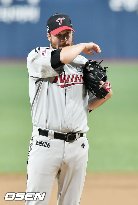 LG 트윈스 새 외국인 투수 스캇 코프랜드가 처음 오른 한국 마운드에서 고전했다.