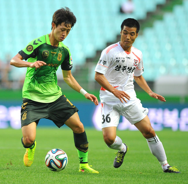 상주 상무와 전북 현대가 상승세의 길목에서 맞붙었다.