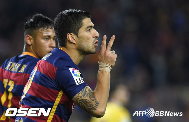4골을 성공시킨 수아레스는 크리스티아누 호날두(레알 마드리드)를 제치고 리그 34골로 득점 랭킹 1위를 차지하게 됐다. /sportsher@osen.co.kr
