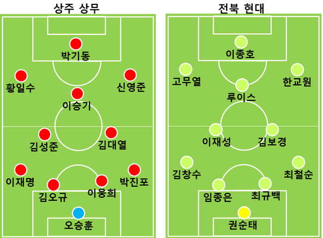 앞서나가지 못한 것은 상주도 마찬가지였다. 설상가상 상주는 후반 30분 근육 경련을 일으킨 이재명을 빼고 최종환을 투입했다. 예상하지 못했던 교체였다. 공격적인 변화가 필요한 상주에는 아쉬운 교체였다. 결국 상주와 전북은 일진일퇴의 공방전 속에 결실을 맺지 못하고 2-2로 경기를 마쳤다.