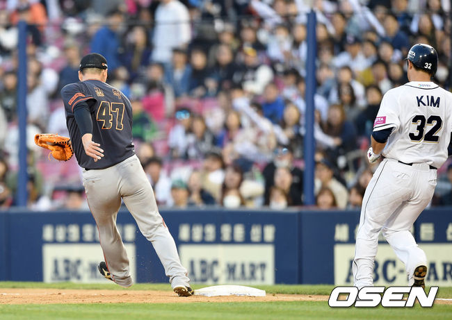 2회에도 무사 1루에서 허경민의 땅볼 타구가 3루수 신성현의 글러브를 맞고 튀어 올랐다. 유격수 하주석이 뒤에서 공을 잡은 뒤 빠르게 1루로 송구했지만, 1루수 키를 넘어 빠졌다. 공식 기록은 3루수 신성현 실책. 심수창이 실점없이 막아냈지만 투구수 증가로 힘을 뺐다.
