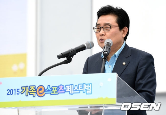 [사진] 2015 가족e스포츠 페스티벌 개회사 중인 전병헌 국제e스포츠연맹 회장.