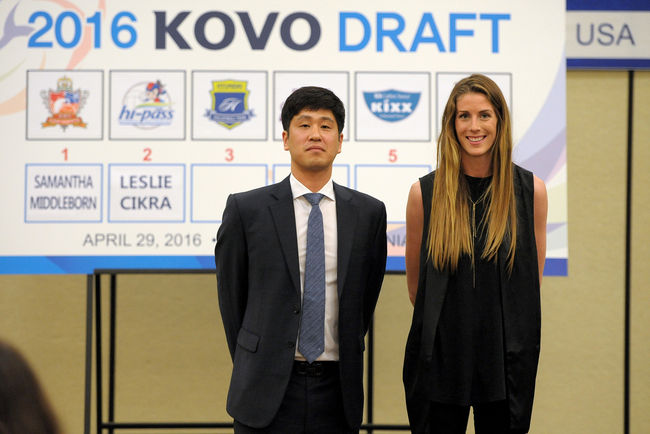 30일(이하 한국시간) 미국 캘리포니아 주 애너하임의 매리어트 호텔에서 한국배구연맹(KOVO) 2016~2017시즌 외국인 선수 드래프트에서 센터와 라이트 포지션의 사만다 미들본(미국)이 1순위로 지명돼 KGC인삼공사의 유니폼을 입게 됐다.