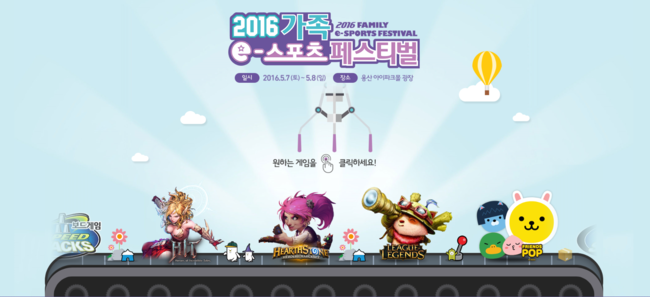 주말인 7일과 8일 양일 간에는 ‘2016 가족 e스포츠 페스티벌’도 개최된다. 온 가족이 함께 게임과 e스포츠를 즐길 수 있도록 마련된 '2016 가족 e스포츠 페스티벌'에는 게임사 넥슨, 라이엇 게임즈, 블리자드 엔터테인먼트, NHN 엔터테인먼트가 종목으로 참가해 각각 히트, LoL, 하스스톤, 프렌즈팝 등의 게임 부스서 다양한 프로그램을 연다. 더불어 가상현실(VR) 체험할 수 있는 공간도 마련됐다.
