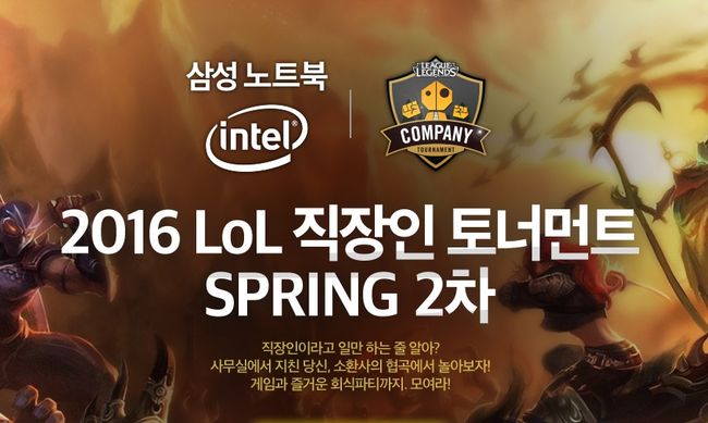 한국e스포츠협회는 직장인들을 위한 리그 오브 레전드(이하 LoL) 대회 ‘삼성 노트북-인텔 인사이드 2016 LoL 직장인 토너먼트(이하 직장인 토너먼트)’ 스프링 2차 대회가 3일부터 참가 접수에 들어간다고 밝혔다. 직장인 토너먼트는 라이엇 게임즈가 주최하고 한국e스포츠협회가 주관하며 아프리카TV가 운영한다.