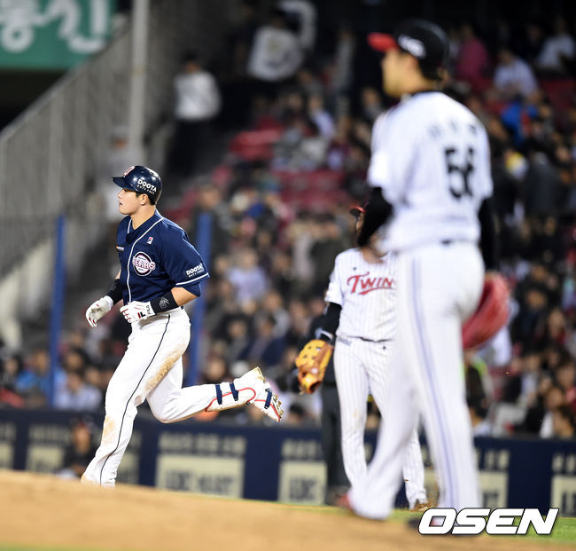 시작부터 두산 타선은 불을 뿜었다. 1회초 정수빈이 2루타를 치면서 우규민 공략의 시작을 알렸다. 민병헌의 좌전안타에 정수빈이 홈에서 태그아웃당했지만, 오재일이 우측 담장을 넘기는 투런포를 쏘아 올려 2-0으로 앞서나갔다.