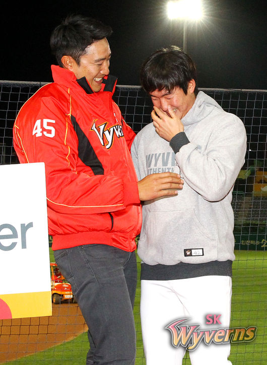 경기 후 팬들을 향한 단상 앞에 두 남자가 섰다. 예상치 못한 조우에 서로를 보며 멋쩍은 미소가 흘렀다. 그러나 서로의 눈을 촉촉하게 적시는 눈물 앞에, 더 이상의 말은 필요 없었다. 4일 인천SK행복드림구장에서 열린 SK와 한화와의 경기가 끝난 뒤 문승원(27, SK)과 제춘모 SK 투수코치는 진짜 '울고' 있었다.