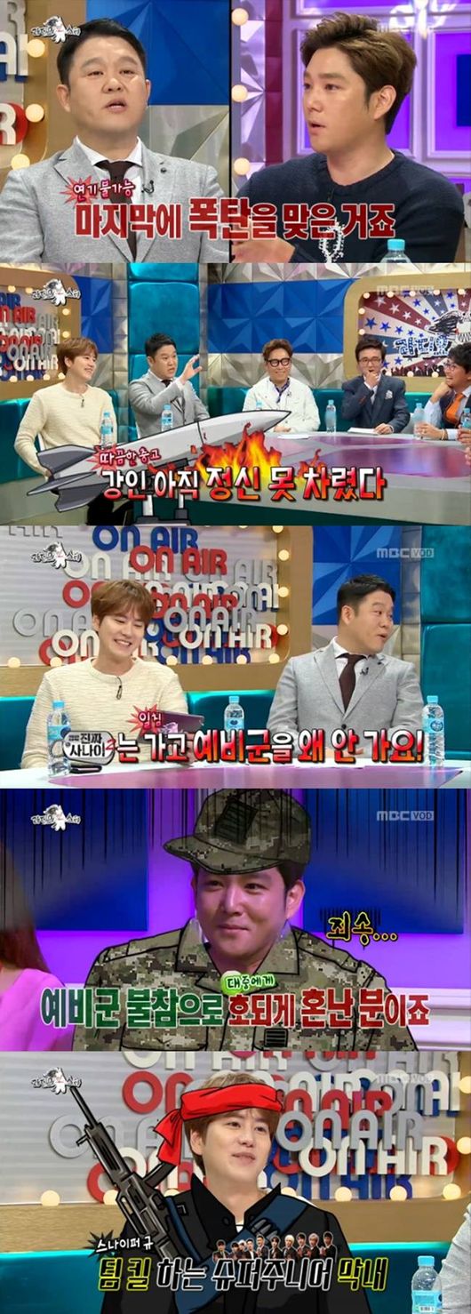 강인은 '라디오스타'가 딱 좋아할만한 게스트다. 할 이야기도 많고, 규현이라는 든든한 슈퍼주니어 CCTV(?)도 있기 때문. 그는 지난 4일 오후 방송된 '라디오스타'에 출연해서도 예비군훈련 사건 하나로도 충분히 분량을 뽑아냈다. 김구라가 딱 좋아할 만한 소재였다.