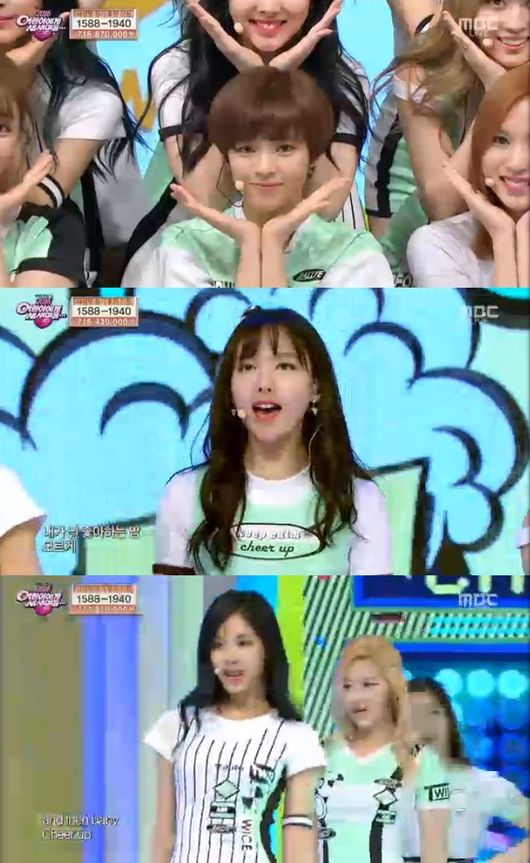 트와이스는 5일 오전 방송된 MBC 특집 프로그램 '어린이에게 새 생명을'에서 'CHEER UP' 무대를 선보였다.