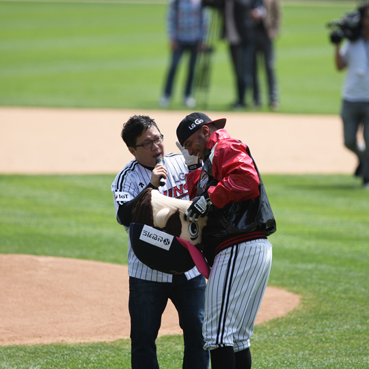 LG 트윈스 외국인 내야수 루이스 히메네스가 어린이를 위한 축제의 날을 맞아 깜짝 이벤트를 벌였다.