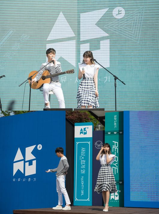 '사람들이 움직이는 게'와 더불어 타이틀로 내세운 건 '리 바이'다. 악동뮤지션은 이 곡 역시 라이브로 준비했다. 이찬혁의 기타 연주에 이수현의 고운 음색이 더해져 환상적인 하모니가 완성됐다. 1만여 관객들은 손뼉을 치며 온몸으로 음악을 흡수했다.