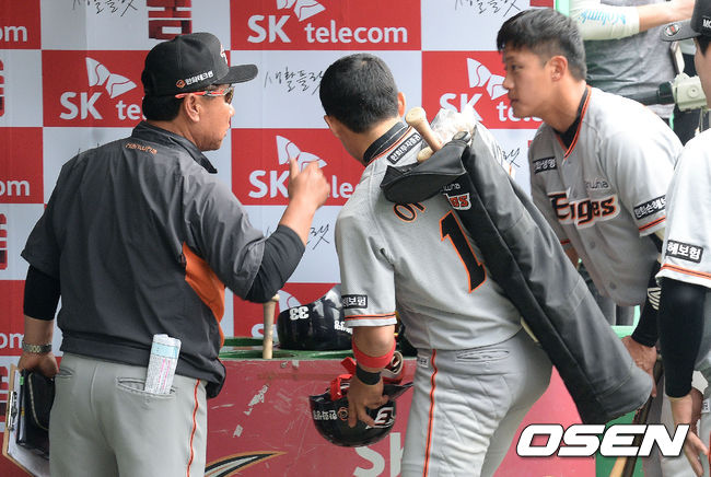 한화 김광수 수석 코치가 김원석을 격려하고 있다. / youngrae@osen.co.kr